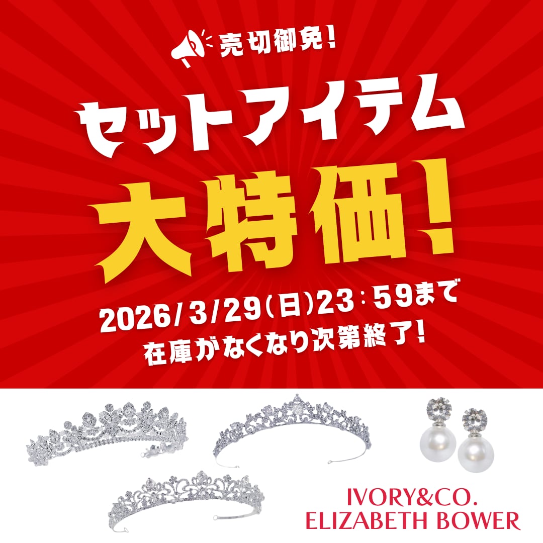 大変お得なティアラとイヤーアイテムのセットです。単品購入よりお得です。 ・Alyssaティアラ Ivory&Co. (アリッサティアラ アイボリーアンドコー) ・Duet Stud Silver イヤリング Elizabeth Bower (デュエットスタッドシルバーイヤリング エリザベスバウアー ) の2つがセットになっています。 ※各商品紹介は以下をご確認ください Alyssaティアラ: https://kkbridal.base.shop/items/98302281 Duet Stud Silver イヤリング: https://kkbridal.base.shop/items/98303607 ※いずれもブランド専用の箱が付いております。 【ご注文前にご確認ください】 ◇ご注文の前に ・新品アイテムです。 ・すべて職人さんの手作りのため、商品によって多少の差異がございますことをご了承ください。神経質な方はご購入をご遠慮ください。 ・レンタル品とは異なり、スケジュール調整不要でご購入いただけます。 ◇キャンセルについて ・お申込み後のキャンセルは不可となっておりますので、ご了承ください。 ◇商品不良について ・万一、商品に破損や汚損があった場合、商品到着日から3日以内にお知らせ下さい。それ以降のご連絡は交換、返品のご対応は致しかねます。 ◇送料/配送について ・本アイテムは送料が料金に含まれています。 ・ご注文後、当日〜3日後までに発送予定となります。 ◇クーポン 本アイテムはインスタフォロワークーポンの対象外です。 その他利用規約: https://kkbridal.base.shop/p/00002